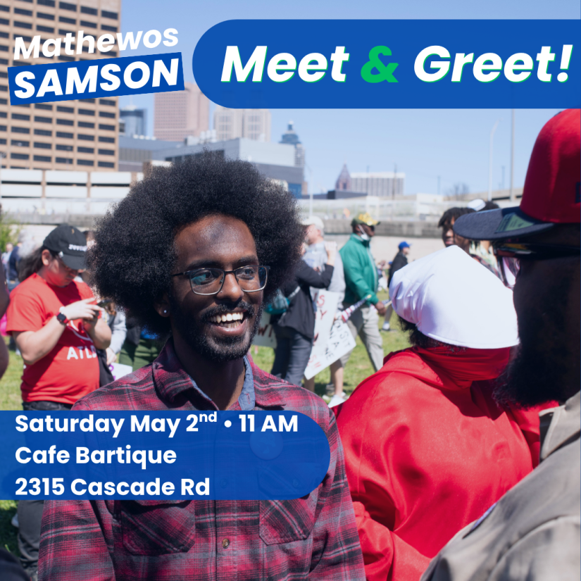 Come meet Mathewos to talk about how we can build a district and a state where working people and families thrive!